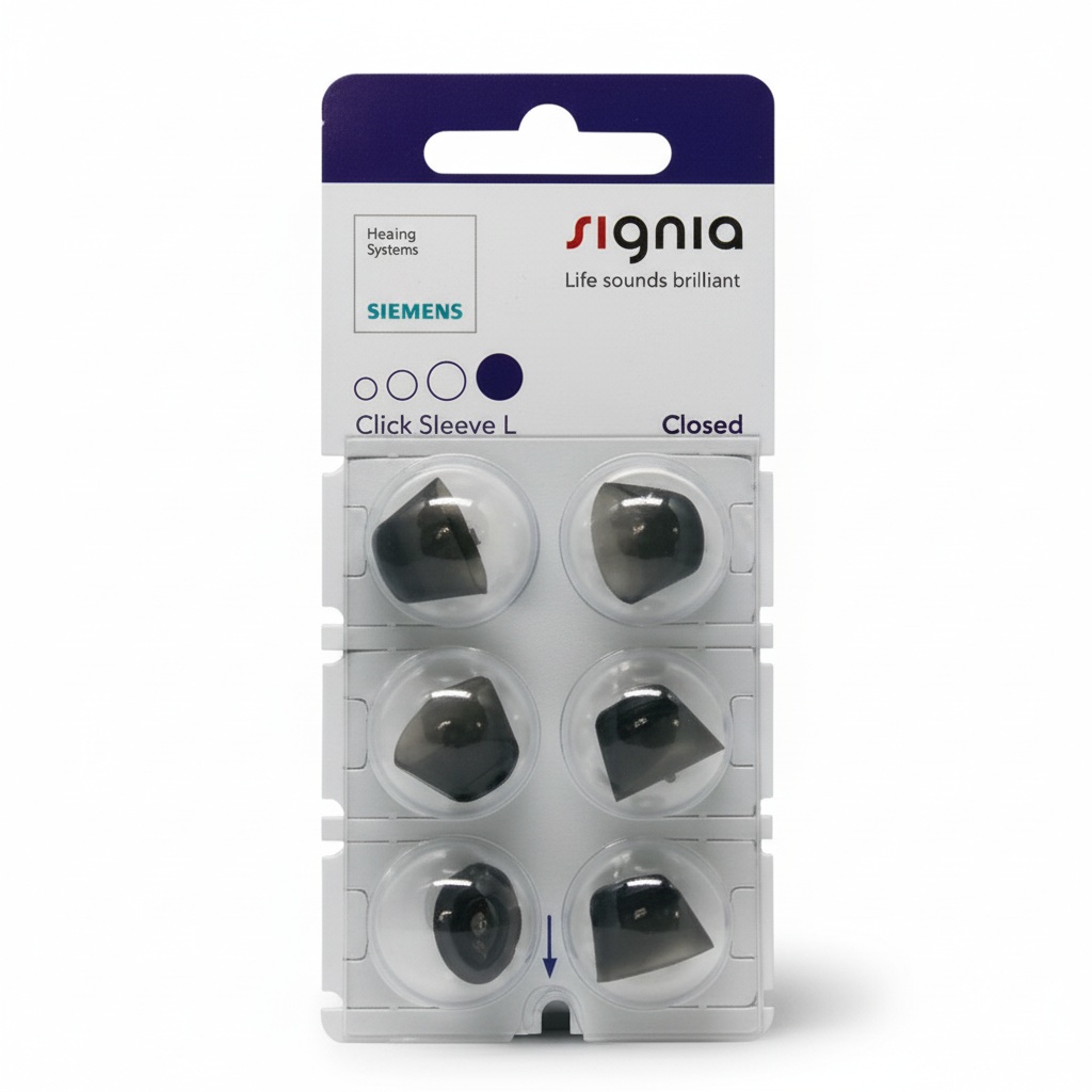 Signia Click Sleeves er domes til høreapparater, som kan bruges til flere af Signias høreapparater, såsom Signia Silk samt almindelige Reciever i øret høreapparater. Ved Signias små Silk høreapparater, som er næsten usynlige inde i øret, sættes domen på høreapparatet og sikrer en perfekt pasform til øregangen. Endvidere gør anti-slip effekten, at høreapparaterne bliver inde i øret hele tiden. Der kan vælges mellem flere versioner af Signia Click Sleeves, hvor der findes både en åben og ventileret version.
