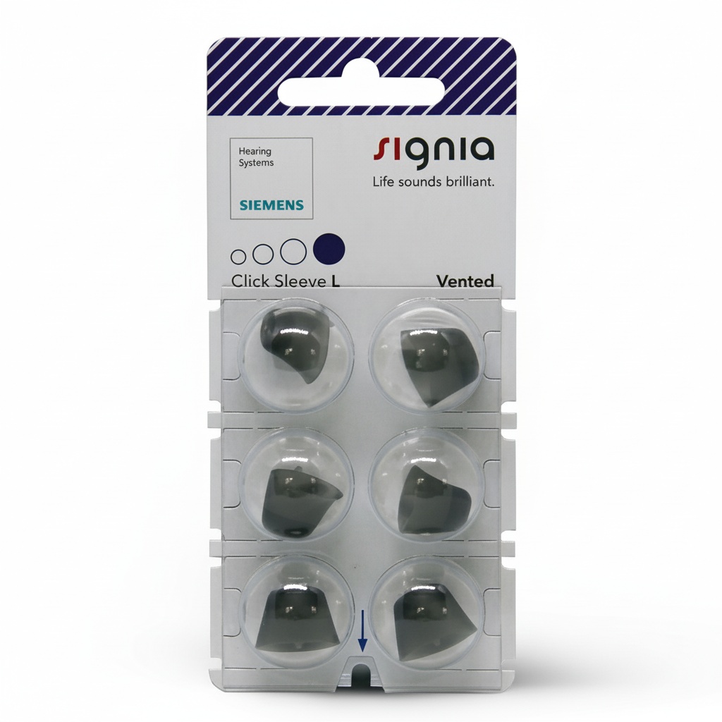 Signia Click Sleeves er domes til høreapparater, som kan bruges til flere af Signias høreapparater, såsom Signia Silk samt almindelige Reciever i øret høreapparater. Ved Signias små Silk høreapparater, som er næsten usynlige inde i øret, sættes domen på høreapparatet og sikrer en perfekt pasform til øregangen. Endvidere gør anti-slip effekten, at høreapparaterne bliver inde i øret hele tiden. Der kan vælges mellem flere versioner af Signia Click Sleeves, hvor der findes både en åben og ventileret version.