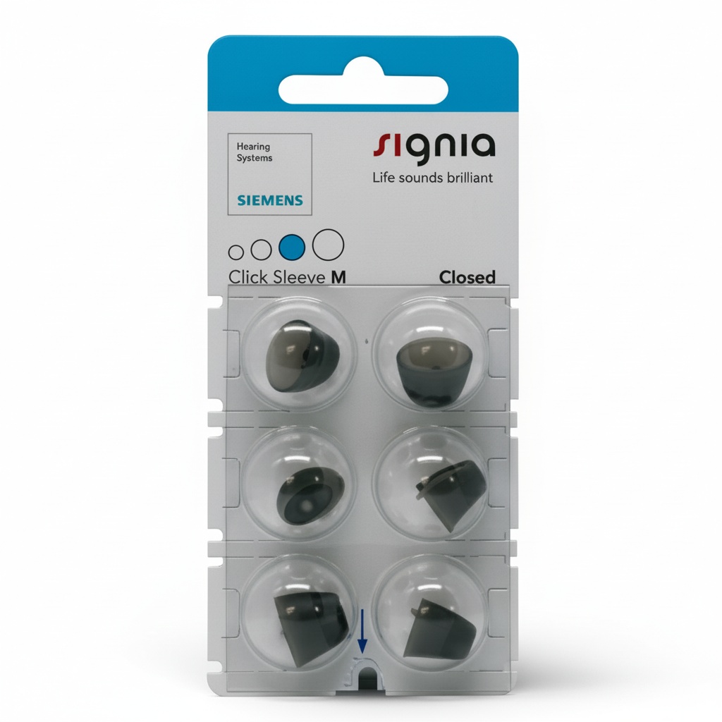 Signia Click Sleeves er domes til høreapparater, som kan bruges til flere af Signias høreapparater, såsom Signia Silk samt almindelige Reciever i øret høreapparater. Ved Signias små Silk høreapparater, som er næsten usynlige inde i øret, sættes domen på høreapparatet og sikrer en perfekt pasform til øregangen. Endvidere gør anti-slip effekten, at høreapparaterne bliver inde i øret hele tiden. Der kan vælges mellem flere versioner af Signia Click Sleeves, hvor der findes både en åben og ventileret version.