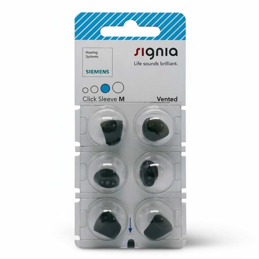 Signia Click Sleeves er domes til høreapparater, som kan bruges til flere af Signias høreapparater, såsom Signia Silk samt almindelige Reciever i øret høreapparater. Ved Signias små Silk høreapparater, som er næsten usynlige inde i øret, sættes domen på høreapparatet og sikrer en perfekt pasform til øregangen. Endvidere gør anti-slip effekten, at høreapparaterne bliver inde i øret hele tiden. Der kan vælges mellem flere versioner af Signia Click Sleeves, hvor der findes både en åben og ventileret version.