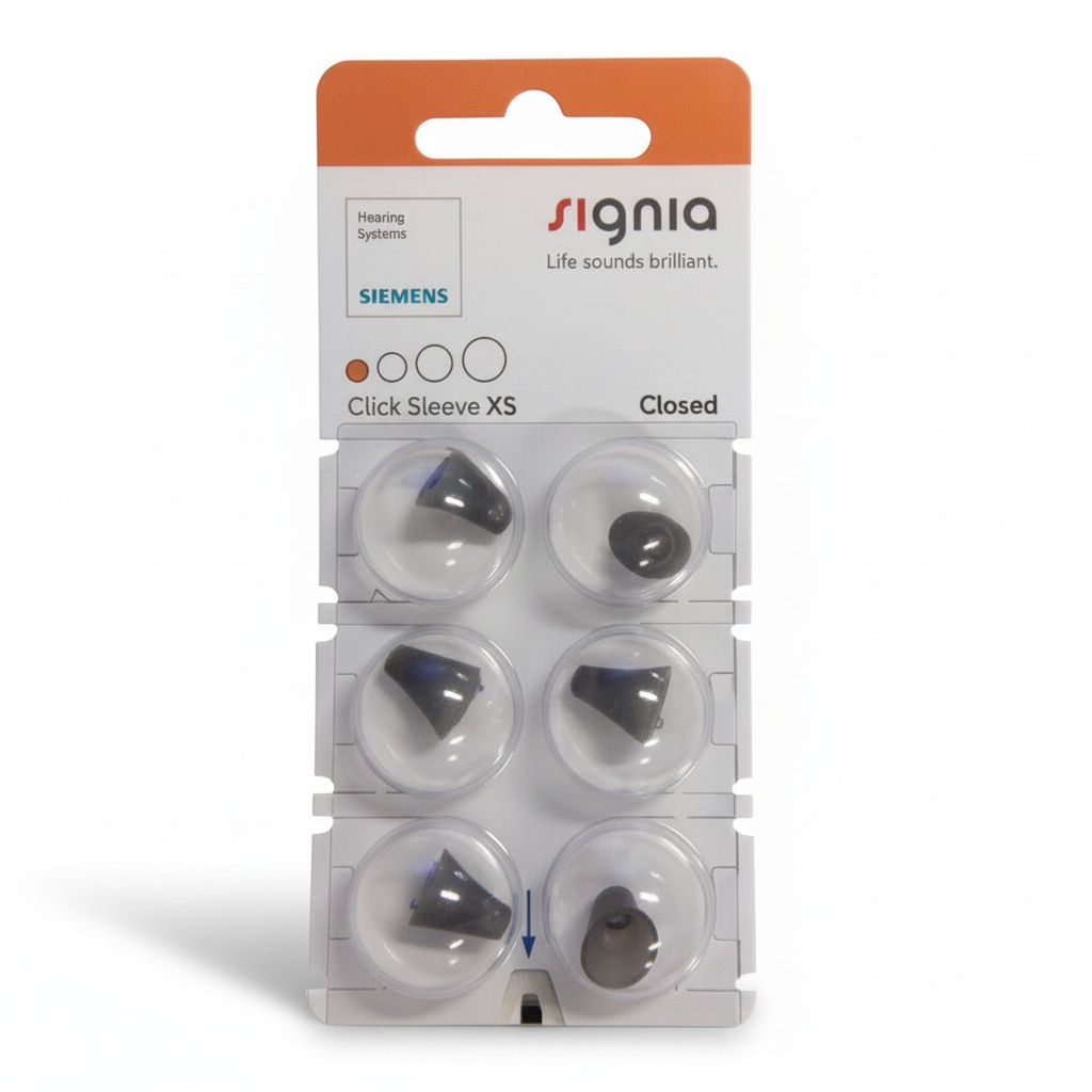 Signia Click Sleeves er domes til høreapparater, som kan bruges til flere af Signias høreapparater, såsom Signia Silk samt almindelige Reciever i øret høreapparater. Ved Signias små Silk høreapparater, som er næsten usynlige inde i øret, sættes domen på høreapparatet og sikrer en perfekt pasform til øregangen. Endvidere gør anti-slip effekten, at høreapparaterne bliver inde i øret hele tiden. Der kan vælges mellem flere versioner af Signia Click Sleeves, hvor der findes både en åben og ventileret version.
