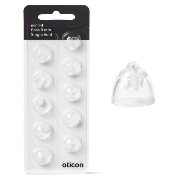 Oticon Minifit Domes er lavet i blødt materiale, og tilpasser sig til dit øre. De bløde lameller sikrer en perfekt pasform i øregange, og ventilationshullerne sikrer, at dine øre og øregang ’får luft’. Du får derfor en individuel pasform og undgår en indelukket følelse i øregangen ved bruge Oticon Minifit Domes.