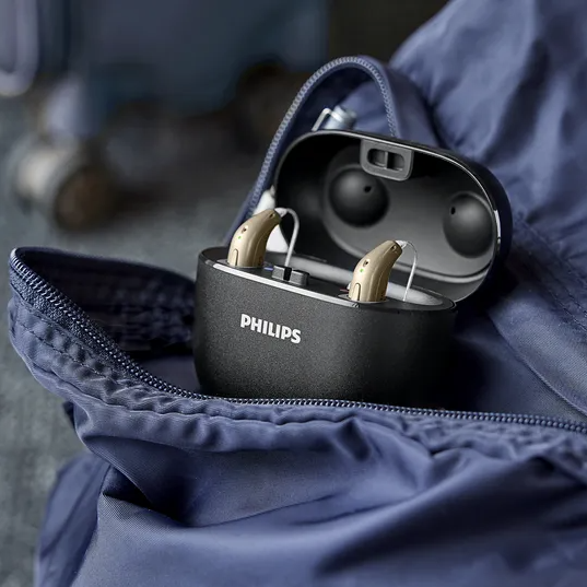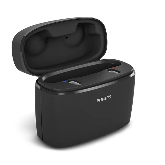 Det bærbare design gør det lettere at holde høreapparaterne opladet hele dagen.
