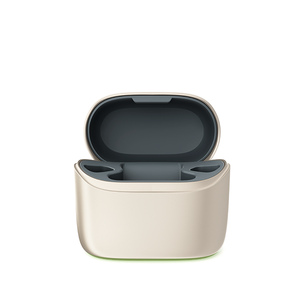 Opladeren fungerer som en praktisk opbevaringsæske når ikke du anvender dine høreapparater, da låget beskytter dem mod støv og slag.