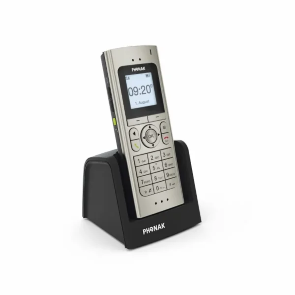 Med Phonak Dect II får du en yderst anvendelig trådløs telefon, der kan bruges af hele familien uanset om man bruger høreapparat eller ej. Dect II viser nemlig kun sin særlige funktion i nærheden af høreapparater. Tilmed er det særlig fordelagtigt, at lyden fra opkaldet overføres til begge høreapparater. Lydstyrken på samtalen kan nemt reguleres via knapperne på siden af telefonen, for maksimal taleforståelse. Samtidig kan du øge lydstyrken med yderligere 15 dB (en funktion, der også kan være nyttig for personer uden høreapparater). Med en funktionsdygtighed på op til 300 meter giver Dect II dig fri bevægelighed, og skulle det ske at du ikke har dine høreapparater på, kan du benytte dig af booster funktionen der gør det nemt at høre din samtalepartner på trods af manglende høreapparater.